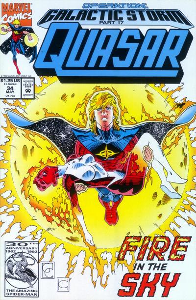 Again instead of a lengthy plot summary, let us say simply, while the two issues are flawed by poor pacing and occasional discordant dialogue from Quasar (who inexplicably finds difficulty dealing with the supernatural), it is an interesting wrap-up to the series. The main focus of these two issues, eventually, is the fate of the billions of Kree who were destroyed by the Nega-Bomb at the climax of the crossover. Quasar fulfills his role as Protector in a most unusual way, bringing peace not to the survivors but to the fallen, finally doing some good (through encouragement, not activity). Inexplicably, Quasar 36, part two of the two-part aftermath, isn’t in the TPB, but it is worth reading.