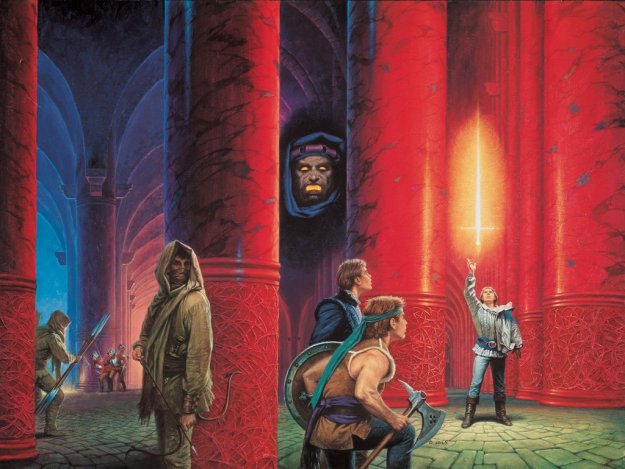 The main storyline is the world’s great despot (of whom no one has heard), Nin, has arrived on the shores simply because he, like locusts, loves to conquer and absorb everything. He is considered a god, he has thousands under his command, and 4 main warlords who rule over 4 sub-armies. We only meet 1 of them, briefly, though we are given a glimpse of all of them early on. They are all very terrifying and impressive, but most of the suspense of this mighty army’s slow march to Askelon (the main capitol) is narratively distant from these 5 villains. Lawhead does a fine job of making them powerful and dangerous, almost Borg-like in their unstoppability, but, then, like “Best of Both Worlds, pt. 2,” the good guys have to win out so they just do. Because. That is one of the main irks of this: after 200 pages of slow-building menace and destruction, with 20 pages left we think “this must be part one,” but suddenly it’s all over and we’re wondering what happened.