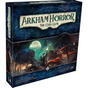 As you many recall, I’m not a fan of horror in any way.  Edgar Allan Poe is pretty much my literary limit, and only in small, rare doses.  True, Abbott and Costello Meet Frankenstein is my third-favorite movie of all time, but that’s not “real” horror, anyway.  Arkham Horror is based on the H.P. Lovecraft world of scariness, which I will likely never read, but now that it is public domain, every  second game that comes out has some sort of Cthulhu topping.  The games from Fantasy Flight Game, though, stand out positively.  I’ve played the board game version of Arkham Horror, and that was good, though, like most people, for time and space reasons (so to speak), it has been replaced by the wider Eldritch Horror.  I am interested in getting the dice game version of this world, Elder Sign (I had the chance to get it this past summer but let it slip by in favor of a more family-friendly game because I’m swell like that), even though it may be rather similar to the others in the series.  Arkham Horror The Card Game is a bit different from them in that it is a card game, in the sense you are a character doing the investigation of the dark forces trying to break into our world.  Eldritch Horror certainly has a lot of decks of cards, but it does not have the same feel, since none of those cards are “yours,” and that personal element in the card game generates a different feel in the game, which I enjoy.  It is also one of the newfangled “living card games,” which is secret code for “endless money hole.”  The base game pictured above gets you four investigators, a slew of cards (equipment, abilities, weaknesses), and three missions connected by a story.  After that, you can buy new stories, new expansions, all with new cards, ways to upgrade your character, different kinds of adventures, making the world/experience grow and continue … but, yes, you have to buy them.  But, you’ve got them, and then you can play them again and again, perhaps as different characters, even after the “secrets” of the stories are over.  It’s fine.