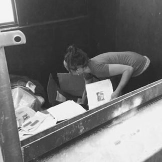 Dumpsters aren’t gross, not really. Human bodies are gross. Nature is gross. We are part of nature, and our trash is just the cosmic compost of our modern industrial world. Plastic polymer stretch-proof bags of cellophane egg shells and orange peels and crumpled theses drenched in coffee stains are just the crumpled compost of human beings. They contain imprints of us. They are not profane. They are profound. These are not pits of our excess, these are archives of our culture. These are sacred tombs that testify to the fact we live and are alive, to the fact we are doing something, we used something, we loved something, we are something, whatever that is.